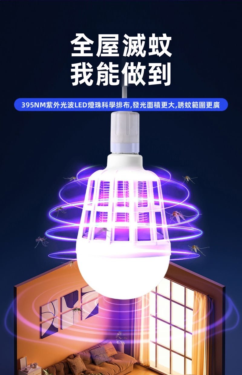 12分鐘前限時搶購 LED照明滅蚊燈E27螺口一擰即裝,UV紫光誘蚊,節能LED無頻閃,護眼超安全,居家戶外兩相宜 - 5入組-[均價299】NT$1499
